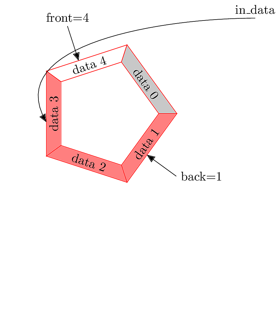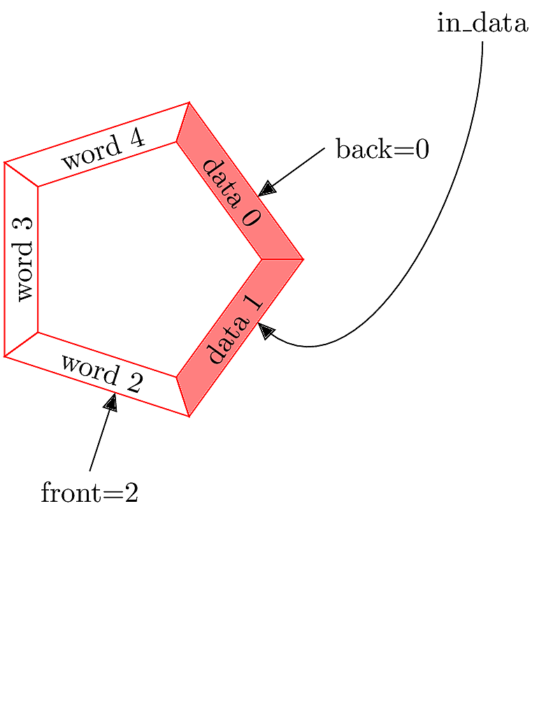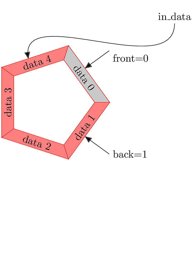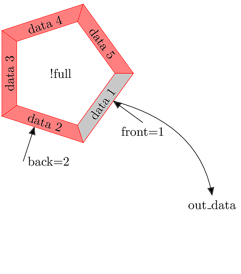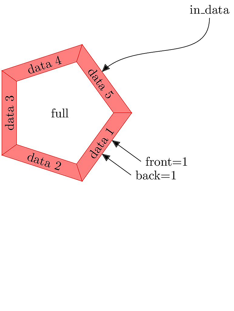 Next, some data is pulled out from the back of the buffer, and back is incremented. The buffer is no longer full.